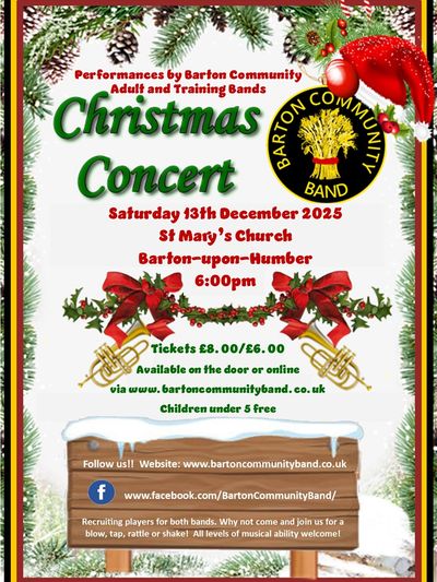 We are delighted once again to be performing back in St Mary's Church, Barton-upon-Humber. This has become a regular event for the Barton Community Band and Barton Training Band and enjoyed by young and old alike.